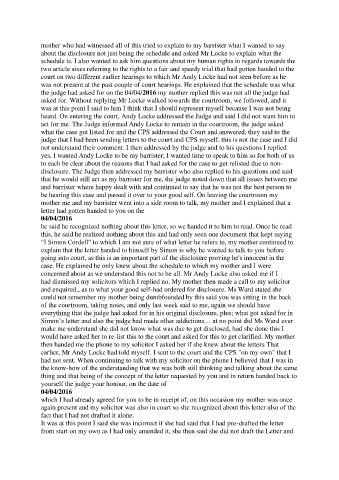 Simon’s letter and also the judge had made other addictions… at no point did Ms Ward ever