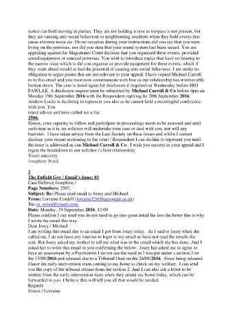 sent, But Josey asked my mother to tell me what was in the email which she has done. And I
