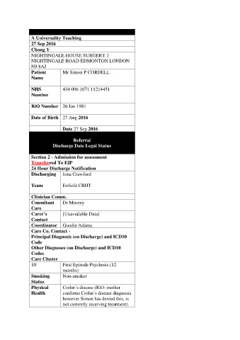 Patient Mr Simon P CORDELL