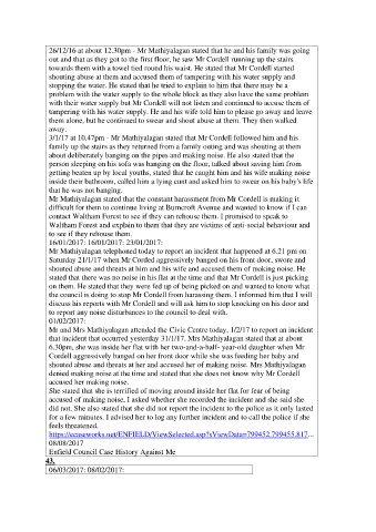 Enfield Council Case History Against Me