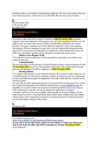 in relation to the letter sent by Lemmy Nwabuisi on 29th November 2016 regarding