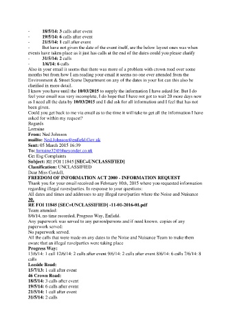 All the calls that were made on any dates to the Noise and Nuisance Team to make them