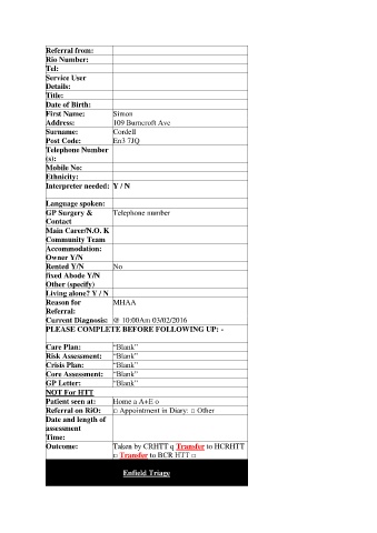 Outcome: Taken by CRHTT q Transfer to HCRHTT