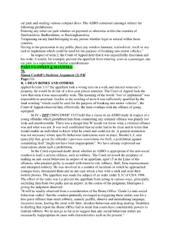 - In IV v DPP [2005] EWHC 1333 held that a clause in an ASBO made in respect of a