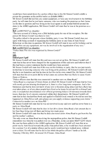 would have been noted down by a police officer due to this Mr Simon Cordell exhibit a