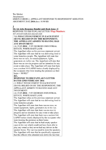 RESPONSE TO HHJ PAWLAK LETTER / Page Numbers:
