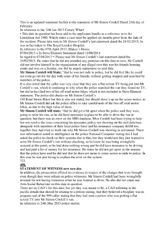 the incident. Please take note to Mr Simon Cordell’s last statement dated the 24/02/2015; he