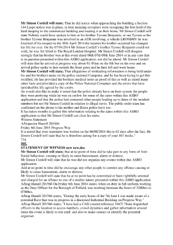Mr Simon Cordell will state that he was did not organize any events within this ASBO
