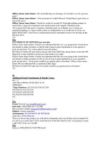 Officer Jason Ames States: Cordell was informed that the rave was going to be closed down