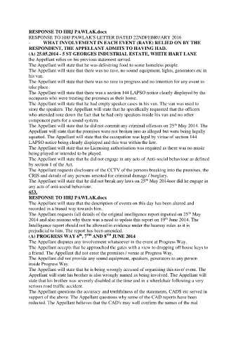 RESPONSE TO HHJ PAWLAK'S LETTER DATED 22NDFEBRUARY 2016