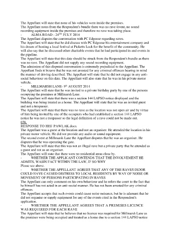 The Appellant notes from the Respondent's bundle there was no rave /event, no sound