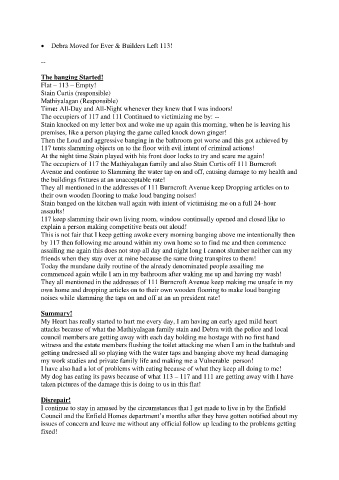 The occupiers of 117 and 111 Continued to victimizing me by: --