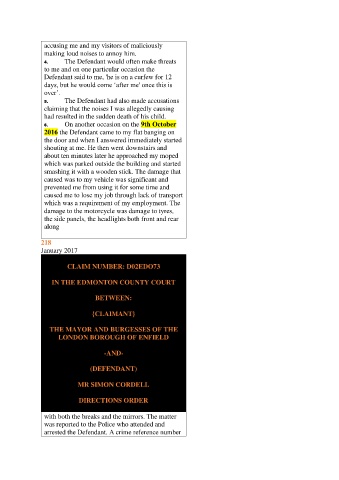 claiming that the noises I was allegedly causing