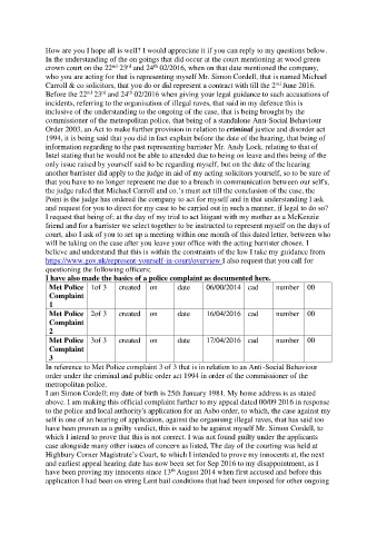 In reference to Met Police complaint 3 of 3 that is in relation to an Anti-Social Behaviour