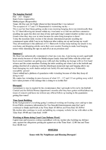 The occupiers of 117 and 111 Perpetuated to victimizing me by: --