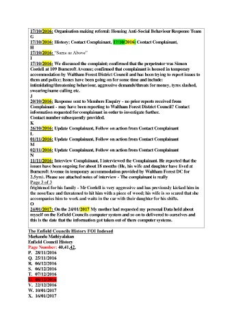 17/10/2016: History; Contact Complainant, 17/10/2016: Contact Complainant,