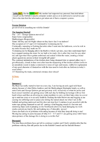 The occupiers of 117 and 111 Continued to victimizing me by: --