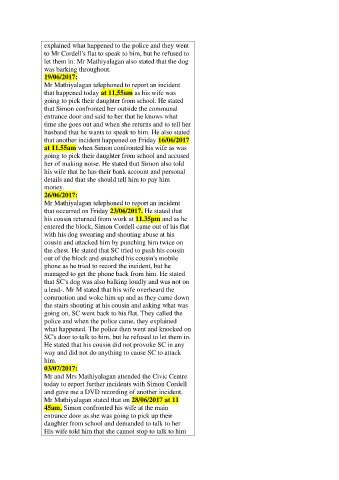 today to report further incidents with Simon Cordell