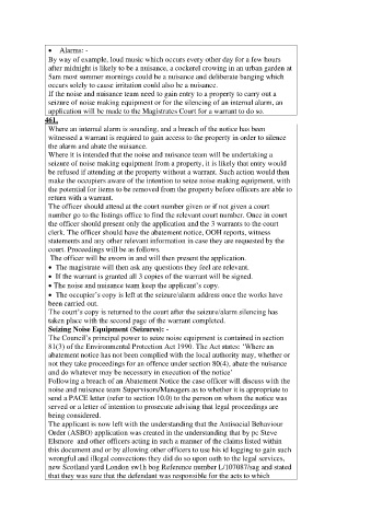 seizure of noise making equipment or for the silencing of an internal alarm, an