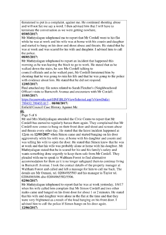 Mr Mathiyalagan telephoned me to report that Mr Cordell went to his flat