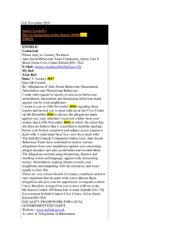Re: Allegations of Anti-Social Behaviour, Harassment,