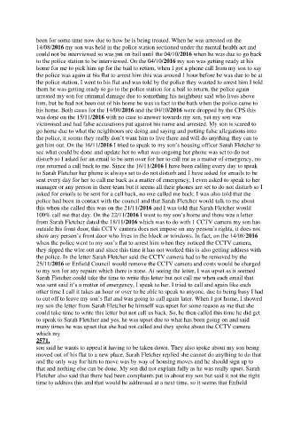 get him out. On the 16/11/2016 I tried to speak to my son’s housing officer Sarah Fletcher to