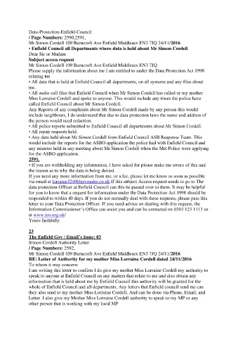 • Enfield Council all Departments where data is held about Mr Simon Cordell