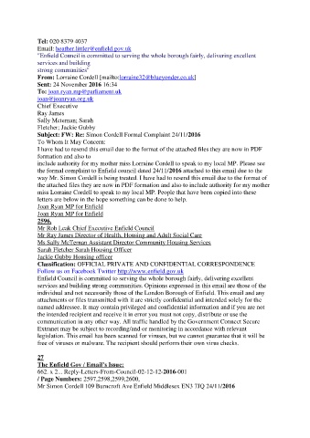 the formal complaint to Enfield council dated 24/11/2016 attached to this email due to the