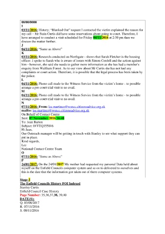 enquiry from Waltham Forest. As to our view about Mr Curtis she has not had any
