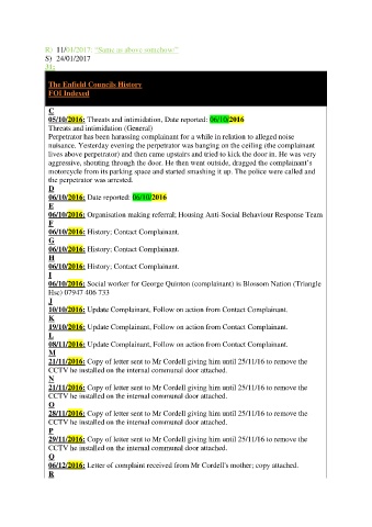 06/12/2016: Letter of complaint received from Mr Cordell's mother; copy attached.