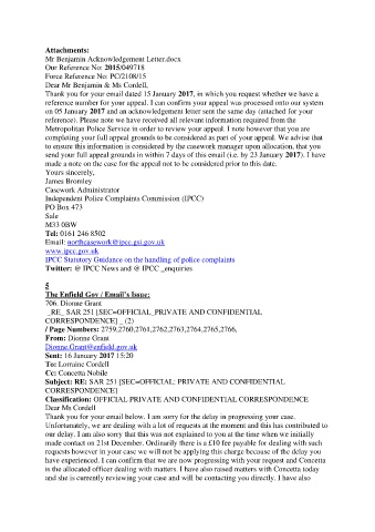 on 05 January 2017 and an acknowledgement letter sent the same day (attached for your