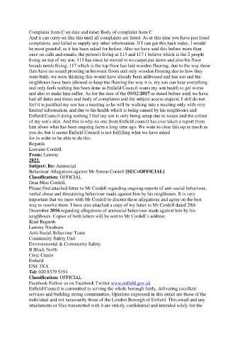 Complaint from C on date and time: Body of complaint from C