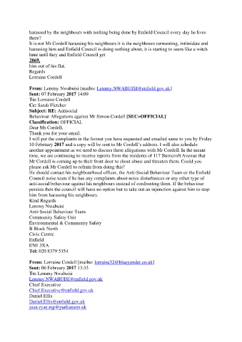 harassed by the neighbours with nothing being done by Enfield Council every day he lives