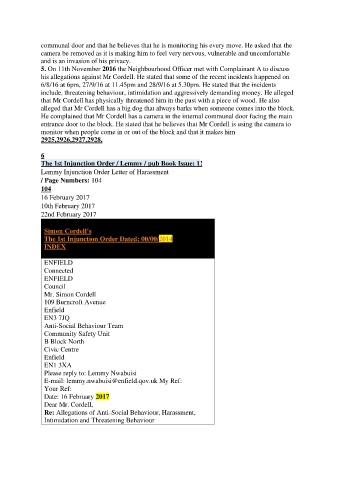 He complained that Mr Cordell has a camera in the internal communal door facing the main