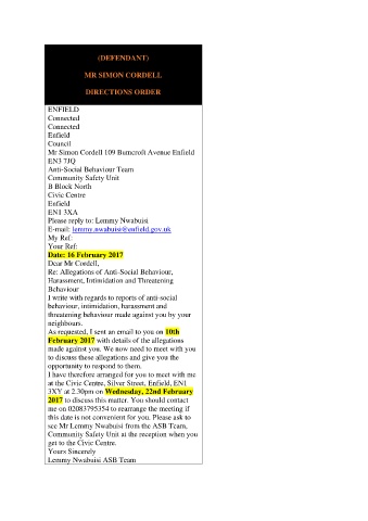 Mr Simon Cordell 109 Bumcroft Avenue Enfield