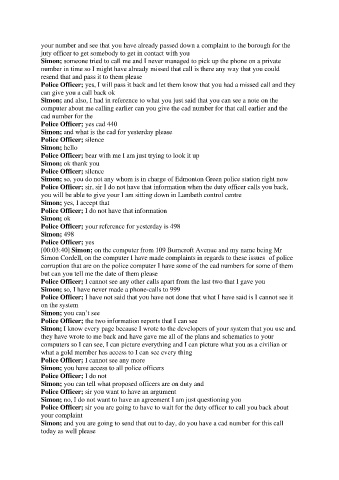Simon Cordell, on the computer I have made complaints in regards to these issues of police