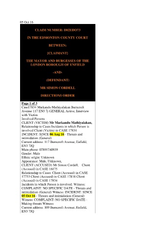 05 Oct 16 - Threats and intimidation (General)