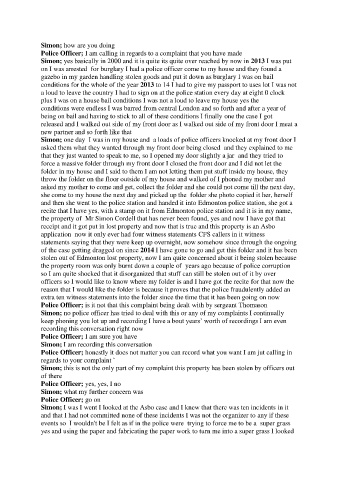 Simon; this is not the only part of my complaint this property has been stolen by officers out