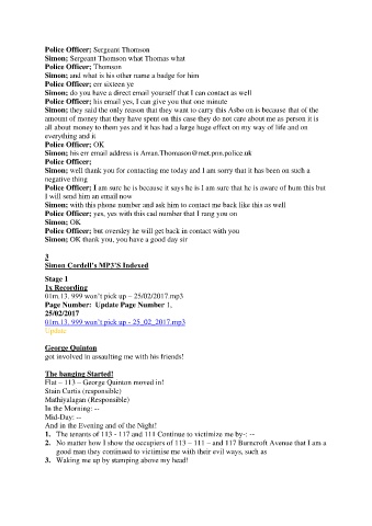 1. The tenants of 113 - 117 and 111 Continue to victimize me by-: --