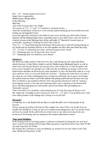 The tenants of 113 - 117 and 111 Continue to victimize me by-: --