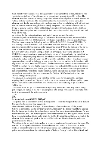 police have also stated that the claimant spoke of links to Occupy London, Black Block and
