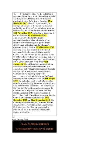 43. It was inappropriate for the Defendant’s