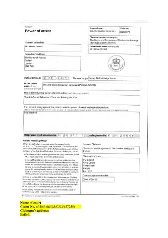 Name of court Claim No. of Enfield (LS/C/LI/157255) Claimant's address: Enfield