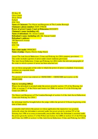The Mayor and Burgesses of The London Borough of section 4 of the Anti-Social Behaviour,