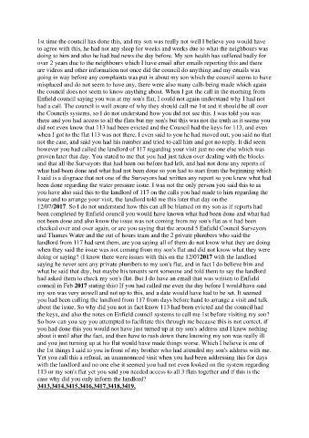 had asked them to check my son's flat. But I do have an email that was written to Enfield