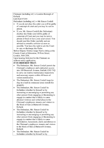 Defendant (including ref.) = Mr Simon Cordell