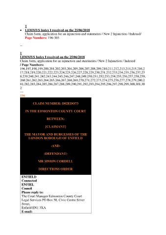 Claim form, application for an injunction and statements / New 2 Injunction / Indexed