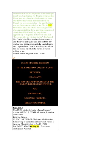 Cordell for us to speak to her - she said that there