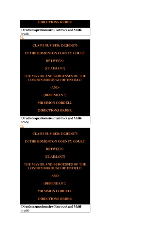 Directions questionnaire (Fast track and Multi-