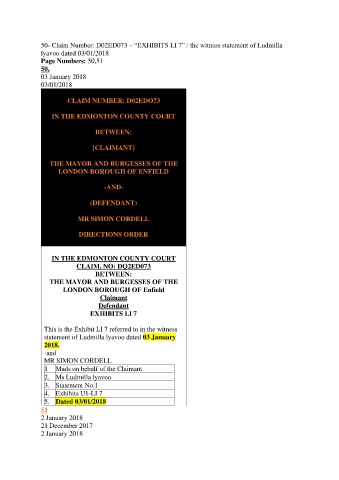50- Claim Number: D02ED073 – “EXHIBITS LI 7” / the witness statement of Ludmilla